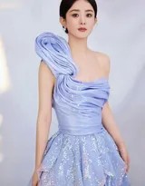 赵丽颖一袭湛蓝单肩长裙演绎温柔力量 褶皱之间尽显光影诗篇