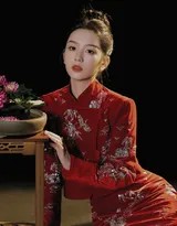 周也央视跨年晚会喜庆红衣造型写真