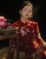 周也的这套红衣造型在设计上别具匠心,服装采用了丝绸与蕾丝的拼接,既显高贵又不失灵动。修身剪裁勾勒出她的优雅线条,而宽大袖口和飘逸下摆则增添了几分仙气。妆容方面,以清新自然的底妆搭配红唇点缀,突出了她的五官立体感,尤其是眼妆的细微闪粉,仿佛星光闪烁,与跨年夜的璀璨灯光相得益彰。配饰上,简约的耳环和手链避免了累赘,让整体造型更显精致。这些细节无不体现造型团队的用心,也让周也的气质得以完美展现。