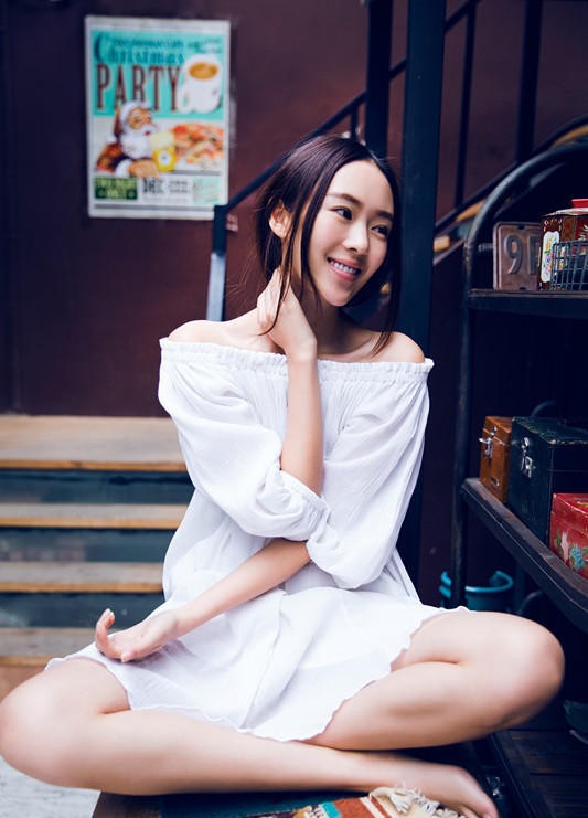 第一组造型中,童瑶身着简约白色上衣,微露的香肩线条优美,如同古典雕塑般精致。她侧坐在窗边,目光投向远方,仿佛在回忆某个温暖的午后。阳光从侧面打来,在她的发丝边缘形成一圈光晕,睫毛在脸颊上投下细密的阴影。这种自然的光影运用,让整张照片充满了呼吸感,仿佛能听到微风拂过窗帘的沙沙声。